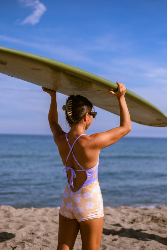 Absolutely love this surf suit! It fits perfectly and hugs in all the right places while still giving that flattering silhouette. The adjustable design makes it super functional and comfortable, and the material feels high quality. I’m obsessed with the vibrant colors and prints! Especially the sunshine suit :)